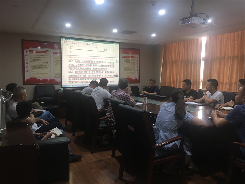 8月22日下午4點(diǎn)30分,點(diǎn)軍城建公司干部職工在會(huì)議室開展了課題為《地下防水工程質(zhì)量驗(yàn)收規(guī)范》的學(xué)習(xí)培訓(xùn)。