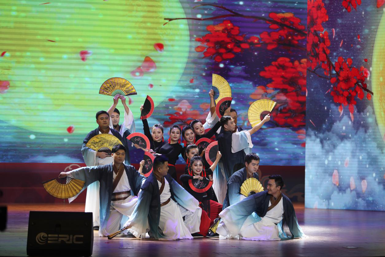 隨著音樂響起,“楚國男子”白衣飄飄,手持紙扇,“江南女子”搖曳身姿,執(zhí)扇起舞。公司參加表演的職工在舞臺(tái)上大放異彩,為現(xiàn)場和觀看直播的觀眾奉上一場美輪美奐的文化盛宴,既再現(xiàn)了楚國藝術(shù)的奇異想象和浪漫色彩,也展現(xiàn)了江南點(diǎn)軍的神秘風(fēng)情和深遠(yuǎn)文化。