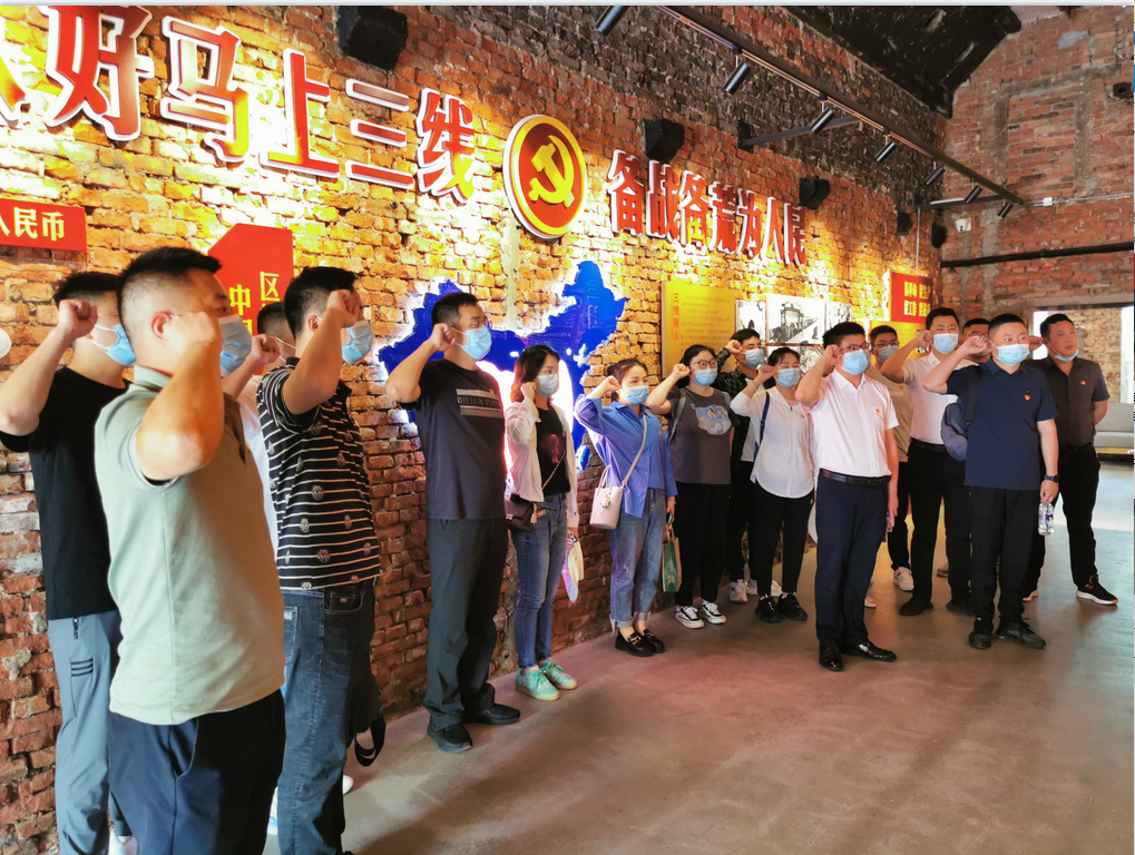全體黨員赴809微小鎮(zhèn),參觀809廠(chǎng)房原貌和“三線(xiàn)”軍工建設(shè)展覽館,一張張照片,一件件物品,都讓黨員們更加清晰的了解了“三線(xiàn)”建設(shè)的背景和成果,感受了三線(xiàn)建設(shè)者們?cè)谔囟v史條件下“艱苦創(chuàng)業(yè)、無(wú)私奉獻(xiàn)、團(tuán)結(jié)協(xié)作、勇于創(chuàng)新”的“三線(xiàn)”精神。全體黨員在展覽館內(nèi)的黨旗下重溫入黨誓詞。