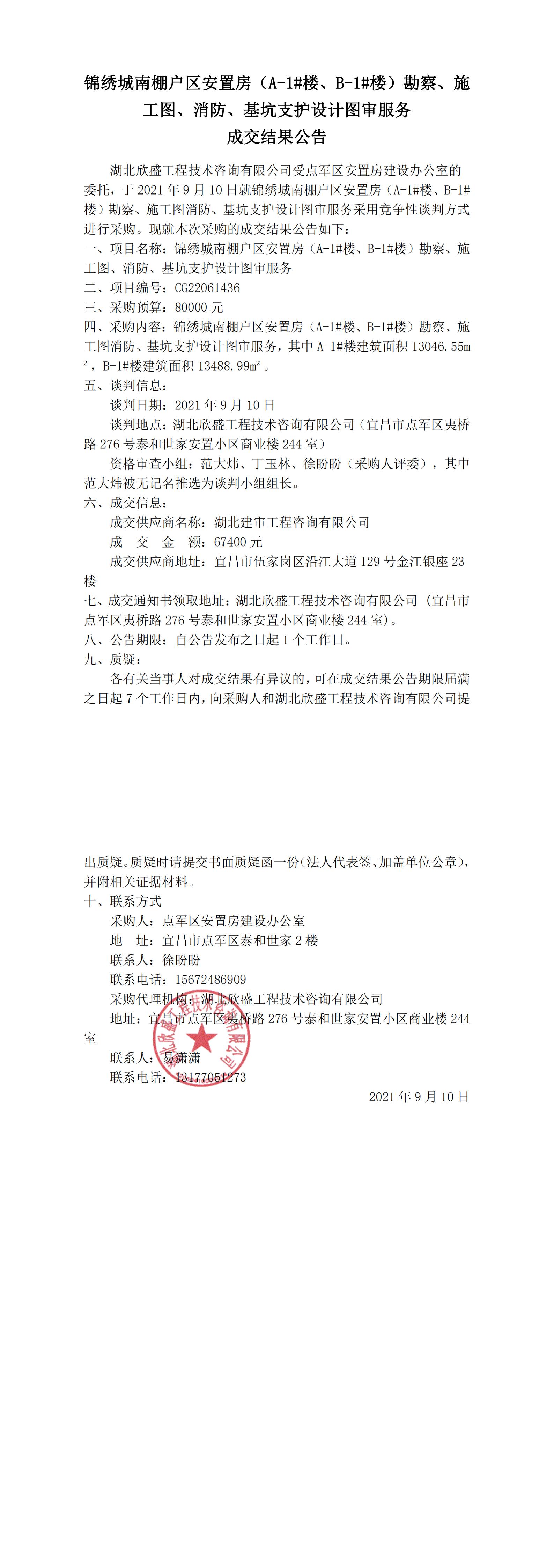錦繡城南棚戶區(qū)安置房(A-1#樓、B-1#樓)勘察、施工圖、消防、基坑支護設(shè)計圖審服務(wù)成交結(jié)果公告