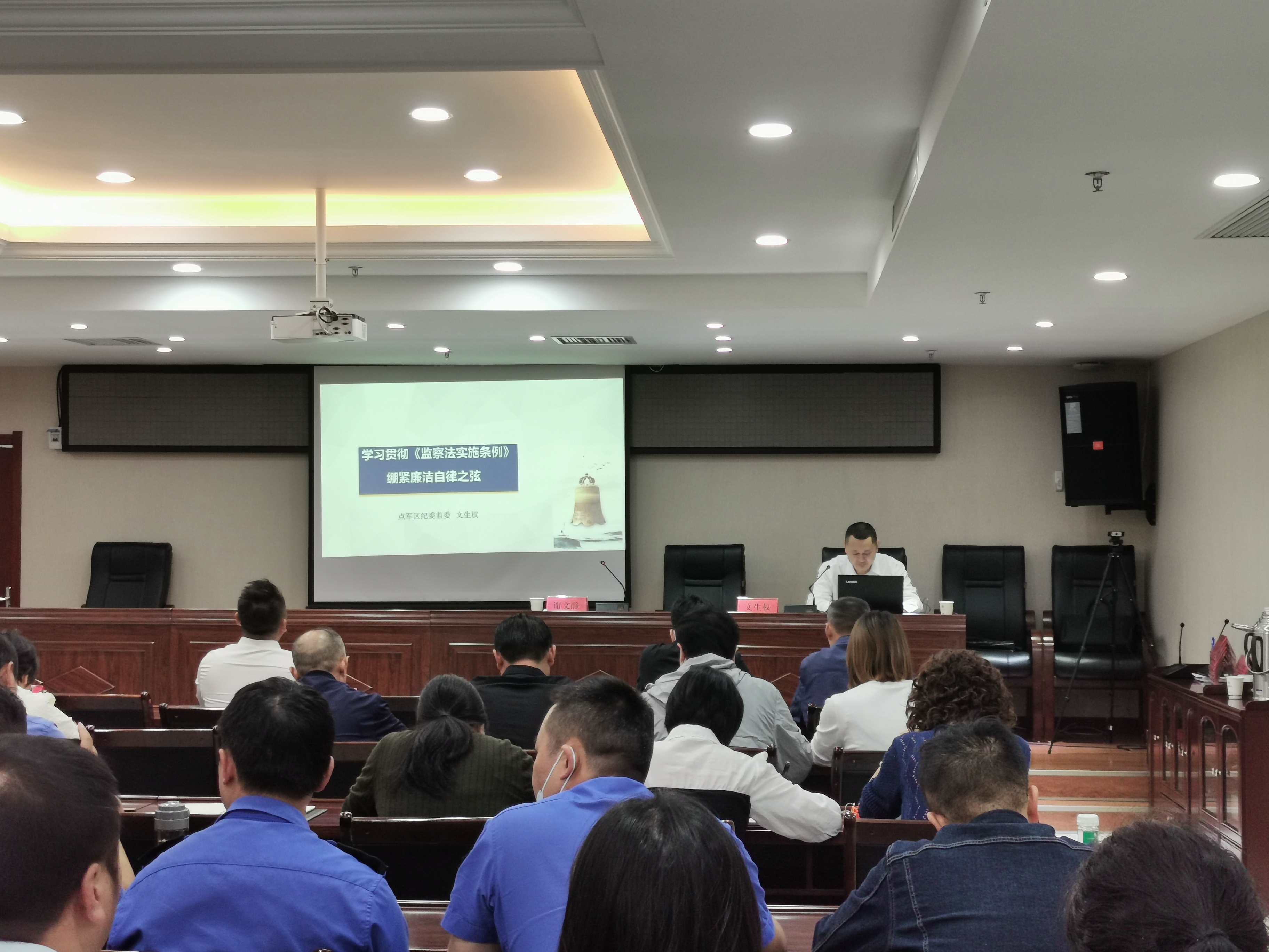宣講以《學(xué)習(xí)貫徹<監(jiān)察法實(shí)施條例>繃緊廉潔自律之弦》為題,從《監(jiān)察法》及實(shí)施條例的關(guān)系,《條例》制定的背景、重要意義及主要內(nèi)容,職務(wù)犯罪釋義及幾種典型職務(wù)犯罪解析,公職人員禁止經(jīng)商辦企業(yè)的相關(guān)規(guī)定,如何做一名遵紀(jì)守法的黨員干部五個(gè)方面進(jìn)行講解,以案說紀(jì),進(jìn)一步教育廣大黨員干部樹牢紀(jì)法意識。