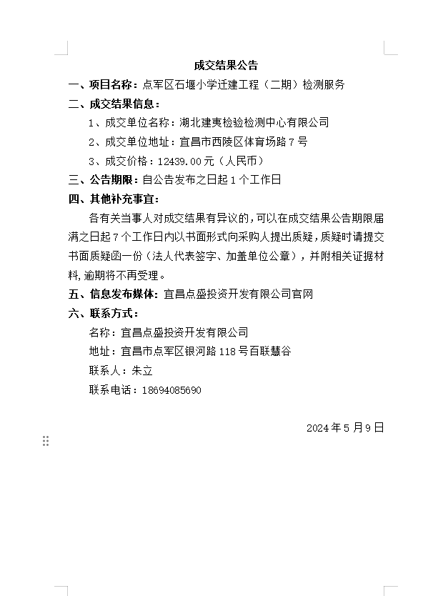 點(diǎn)軍區(qū)石堰小學(xué)遷建工程(二期)檢測服務(wù)成交公告