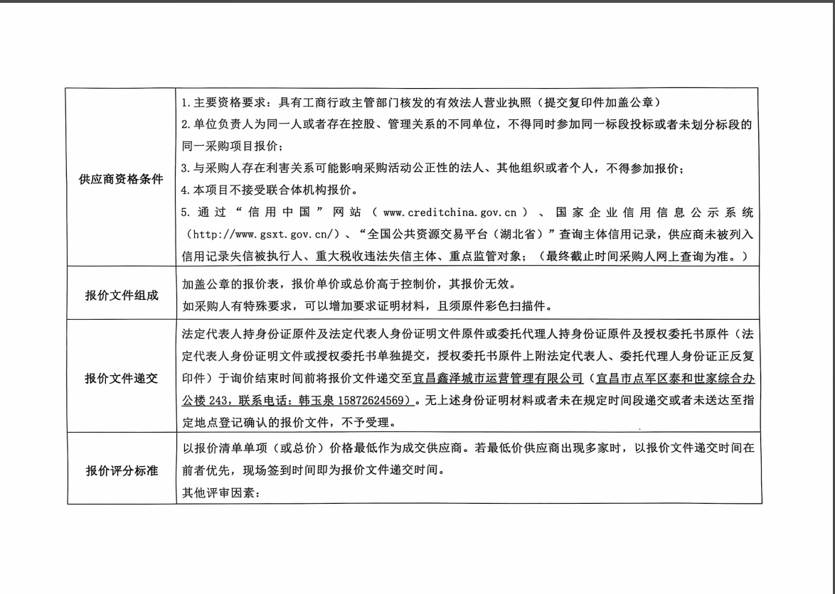 詢價(jià)公告