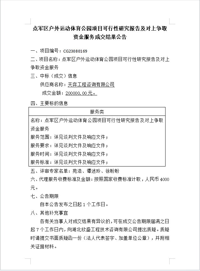 點(diǎn)軍區(qū)戶外運(yùn)動(dòng)體育公園項(xiàng)目可行性研究報(bào)告及對(duì)上爭取資金服務(wù)成交公告